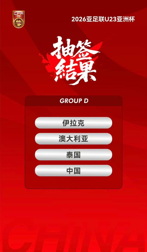 体育日报北京10月2日热讯 2日,2026年沙特阿拉伯U23男足亚洲杯抽签出炉。中国队作为第四档球队,与伊拉克队、澳大利亚队、泰国队同分在D组。