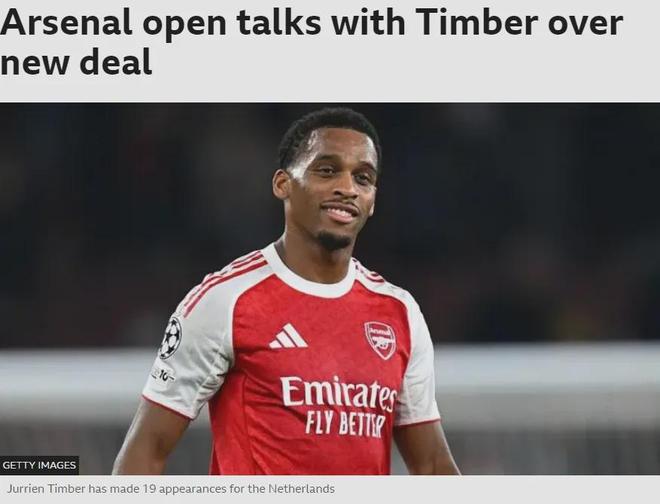 BBC记者SM发文,阿森纳已经和廷贝尔开启了续约谈判,他们希望奖励这名后卫的出色表现。